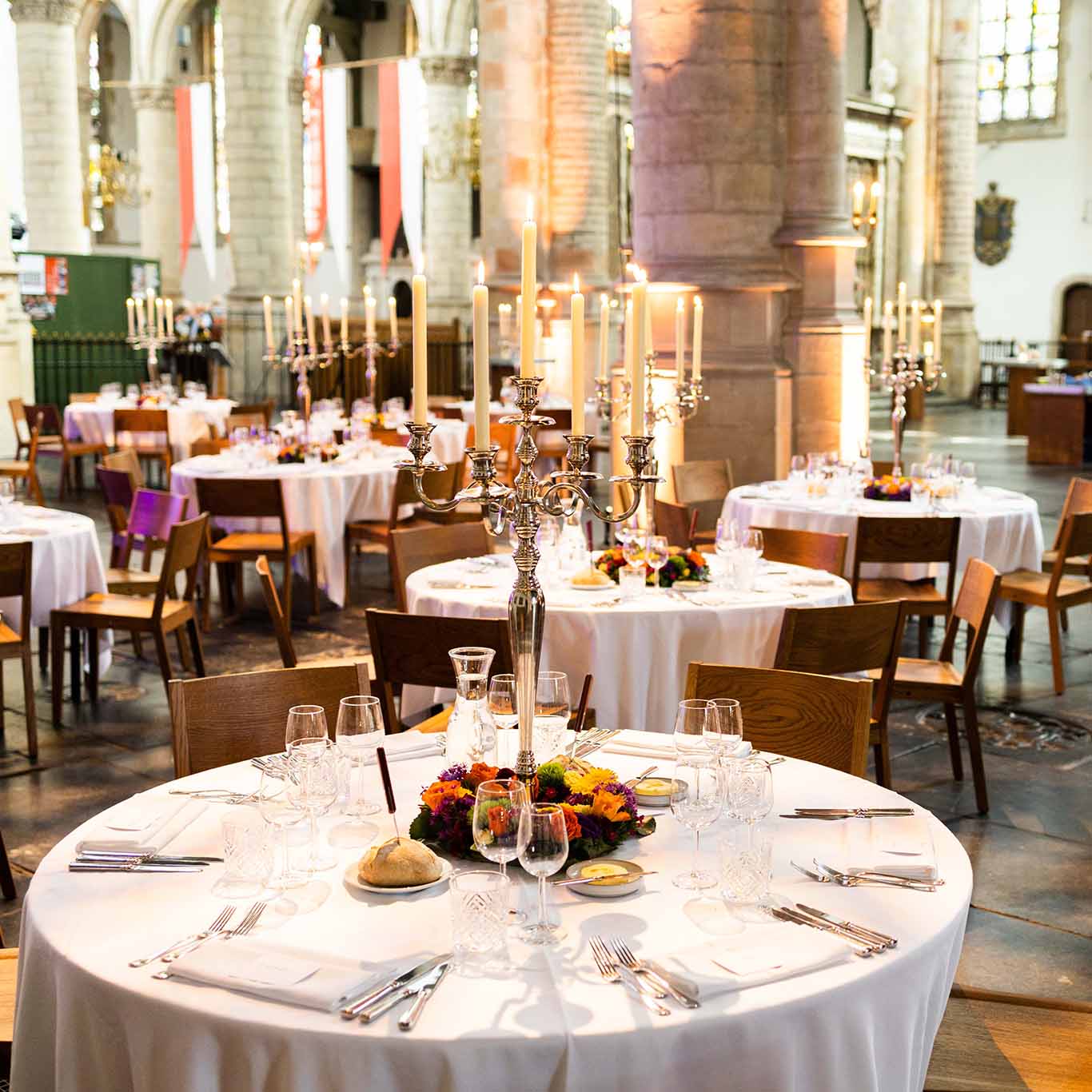 Ontvang uw gasten onder het Koningsglas van Filips II van Spanje, om vervolgens plaats te nemen in het schitterende Koor van de Sint-Jan met de messing vloer. Het is een ervaring die uw gasten bij zal blijven!