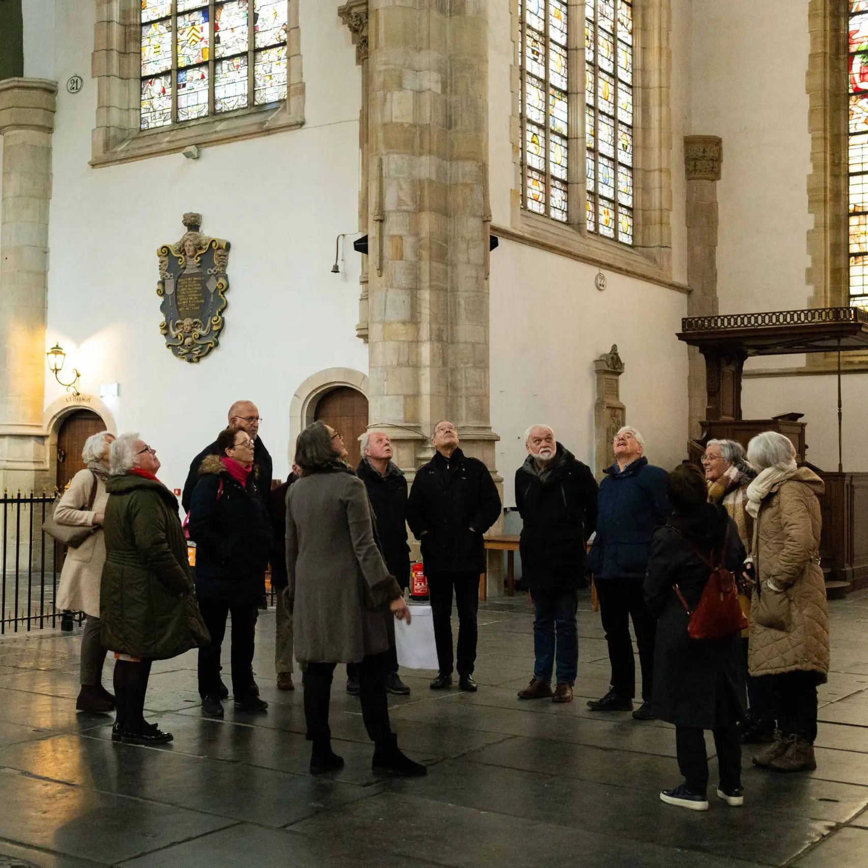 Onze deskundige en enthousiaste gidsen vertellen u het grote verhaal achter de ramen, dat soms in hele kleine details is verstopt. De gidsen van de Sint-Jan spreken verschillende talen en vooraf kan voor een thema worden gekozen. Desgewenst ontvangen wij uw gasten met een kopje koffie en een echte Goudse stroopwafel.