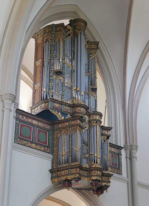 Het orgel werd in de loop van de tijd behoorlijk gewijzigd. Een paar ingrepen worden hier genoemd. In 1600 bouwde Dirck Pietersz de Swart een nieuw rugwerk met 5 registers. In 1687 werden er door Jacobus Cools nieuwe windladen geplaatst in het rugpositief en een uitbreiding met 5 stemmen. Bij de werkzaamheden in 1718 door Johannes Duyschot was er naast de dispositie wijziging ook een aanpassing aan de orgelkas met o.a. vergulden van de frontpijpen en snijwerk.